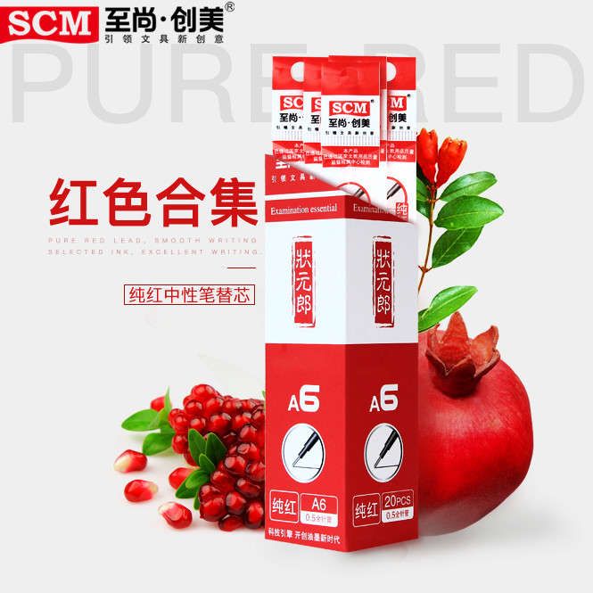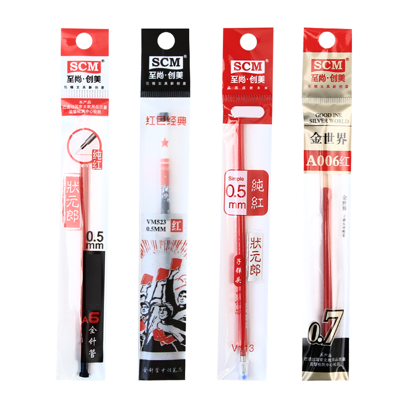 To Shang-Chong Mei red refill teacher with water-based pen refill 0 5mm stand-in core red refill 0 38mm Full needle tube Warhead Refill Wholesale Student with a red medium pen core
