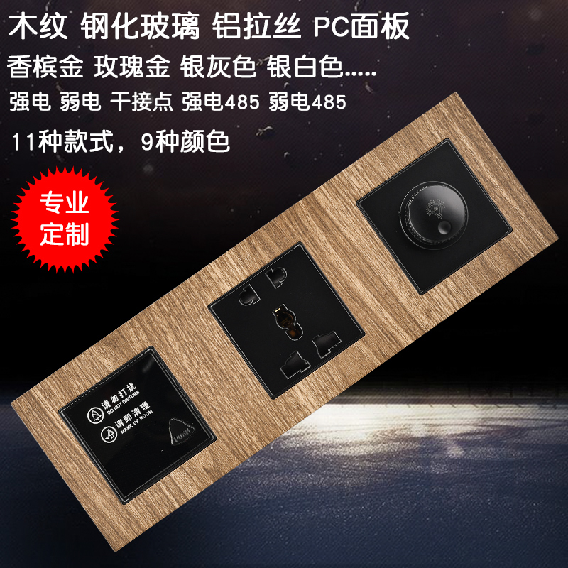 Hotel siamese switch Wood grain combination socket Weak current dry contact panel bedside table custom set control board type 86