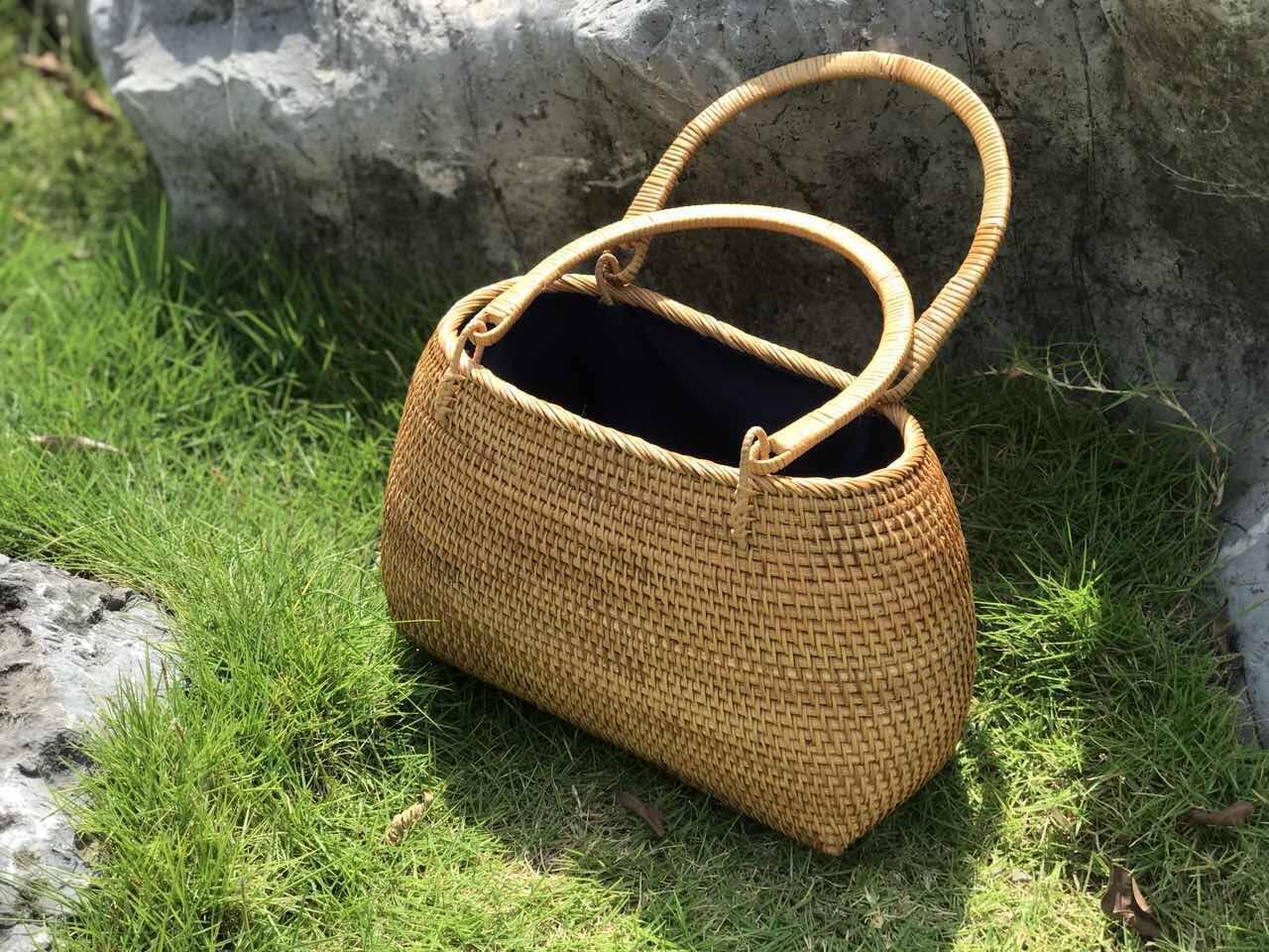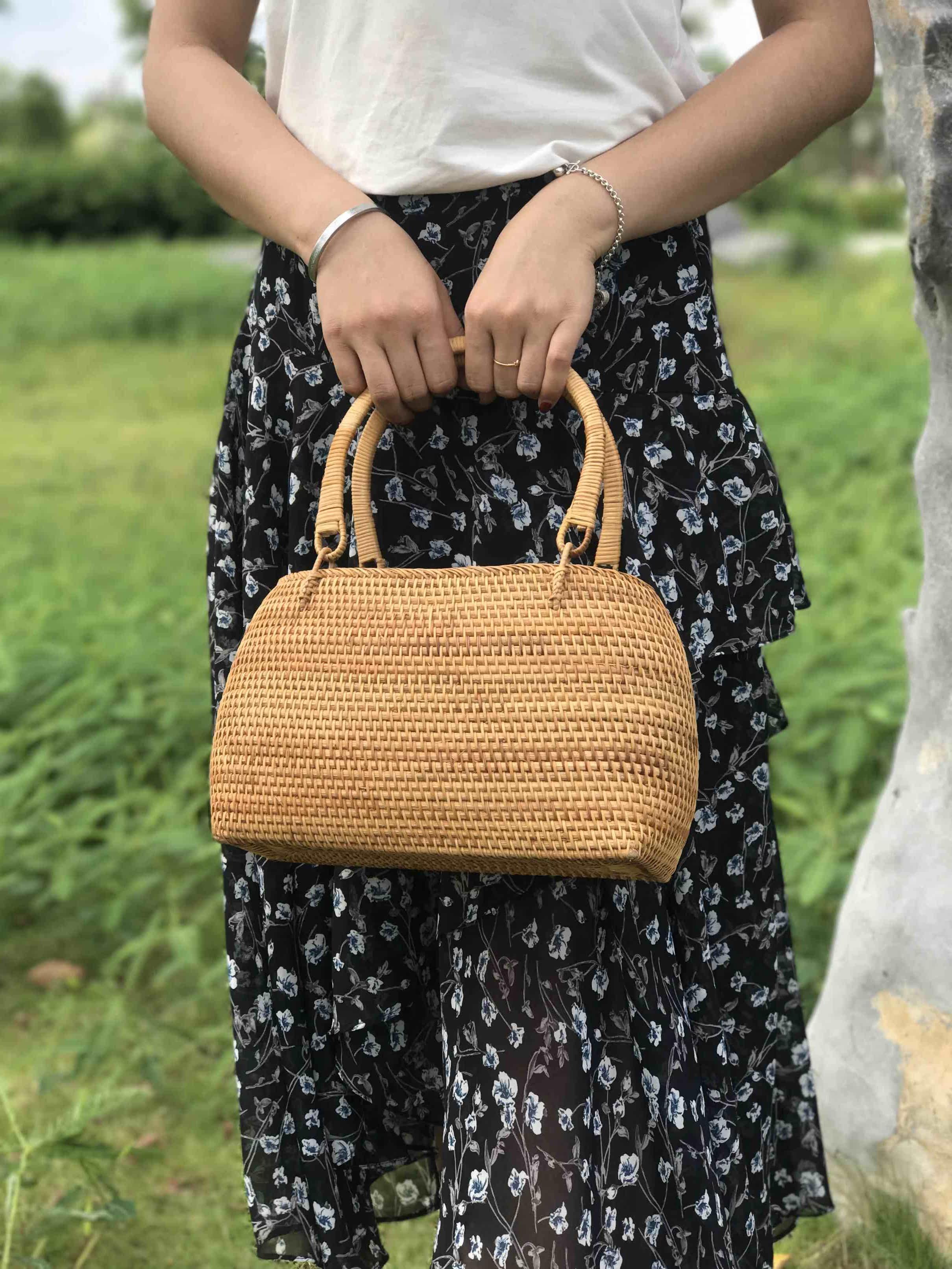 Oval Vine Woven Pure Artisanal National Wind Handbag Bag New Women's Bag Handbag Handbag