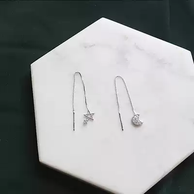 S925 Sterling Silver Star Moon ear refining Korean temperament female long version star Moon asymmetry is not easy allergic earrings jewelry