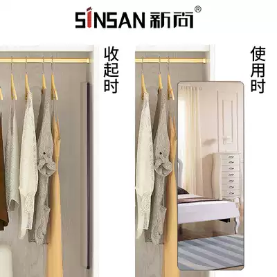 Wardrobe mirror Full-length mirror Full-length mirror European-style makeup push-pull mirror rotating telescopic folding full-length mirror floor wall hanging