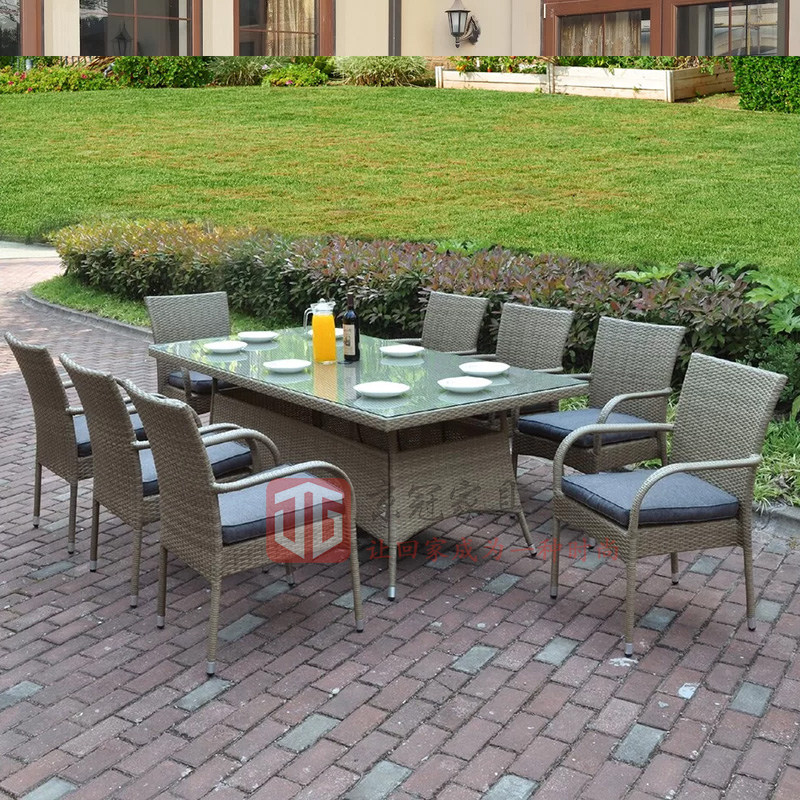 One table 6 chairs (160*80) with mat and one table 8 chairs (200*80)with cushion, one table (80cm round table) with a mat, four chairs (80cm table) with a cushion