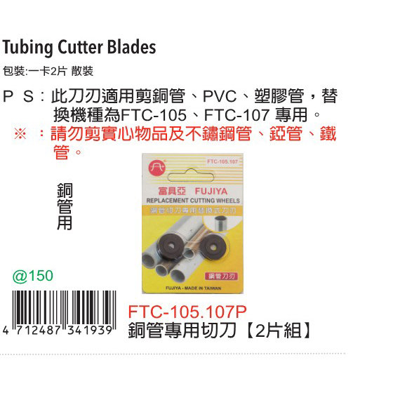 Taiwan's original imported Fujuya FTC-105 107 copper pipe special cutter pipe cutter blade (2 pieces)