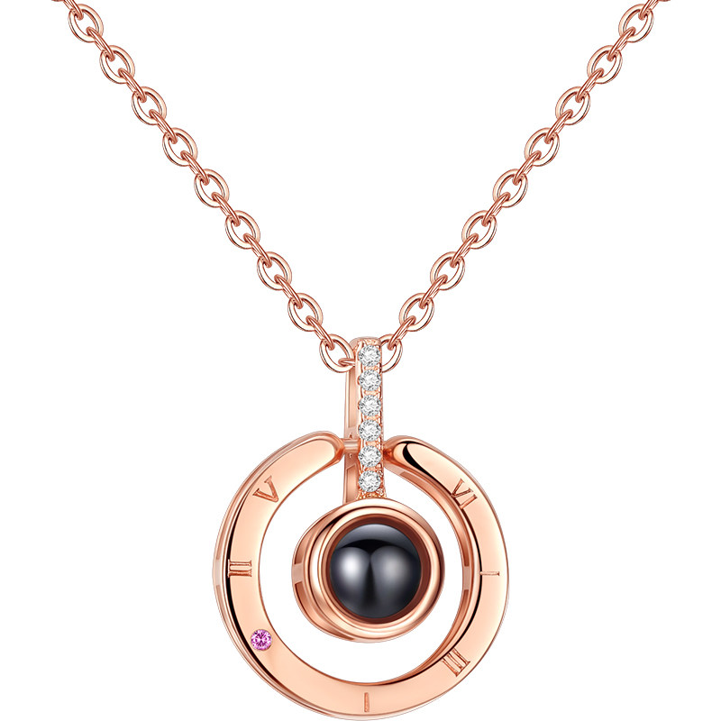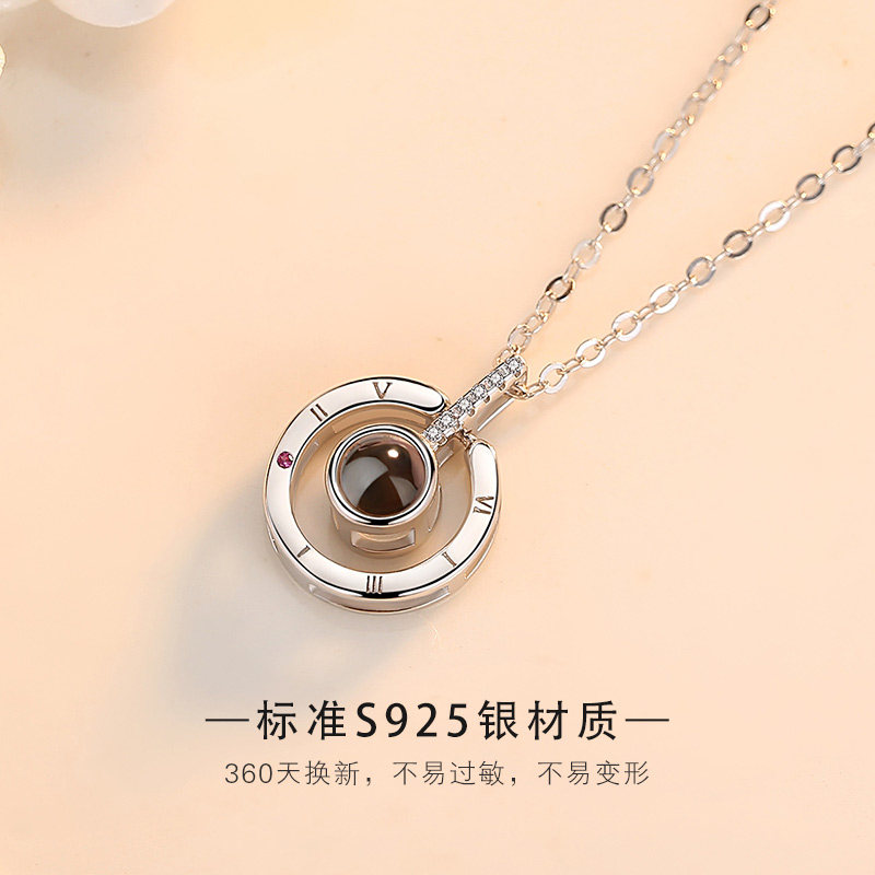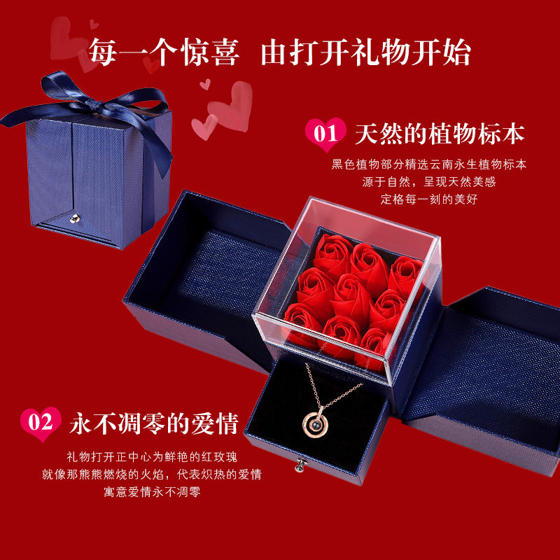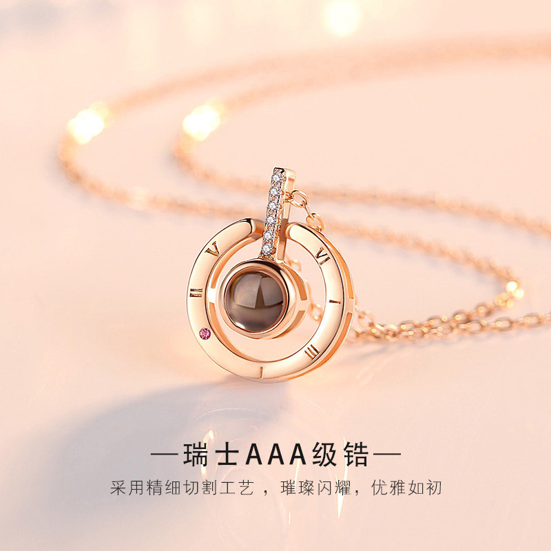(custom color photo) Love of memory rose gold necklace beloved gift box 18K white gold pendant 18K white gold O word chain authority certificate blue perpetual flower gift box (custom lettering) love note