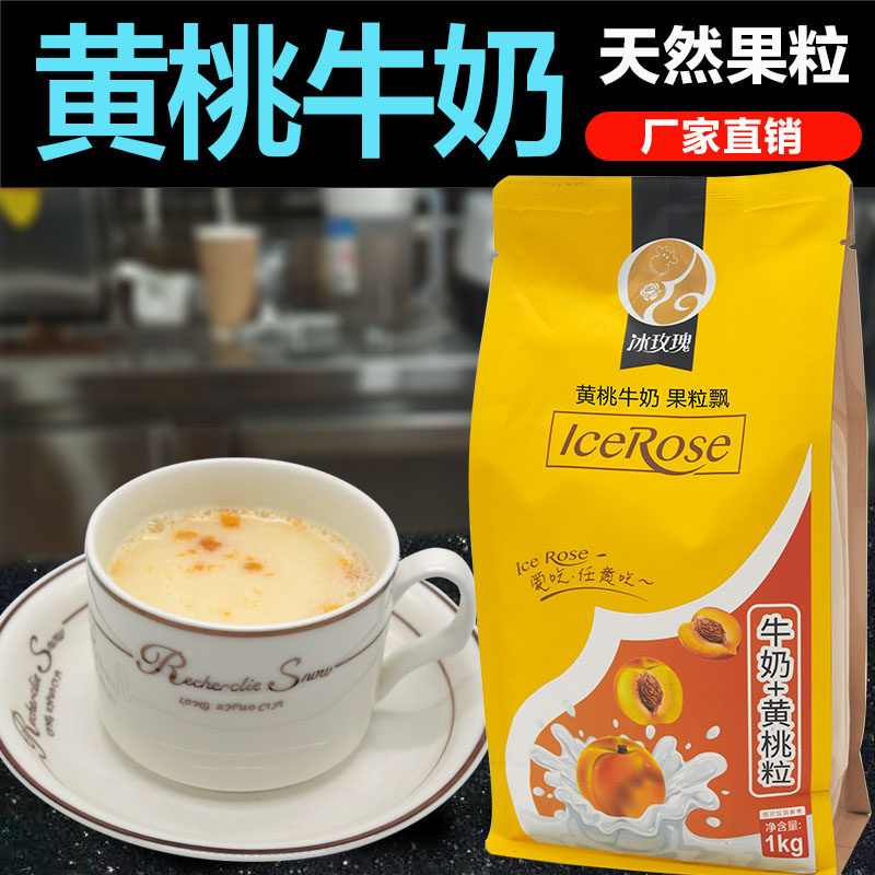 Yellow Peach Milk Real Fruit Grain Fluttering Solid Beverage Powder Instant Ring Drink Pint Pearl Milk Tea Powder Raw 1000g