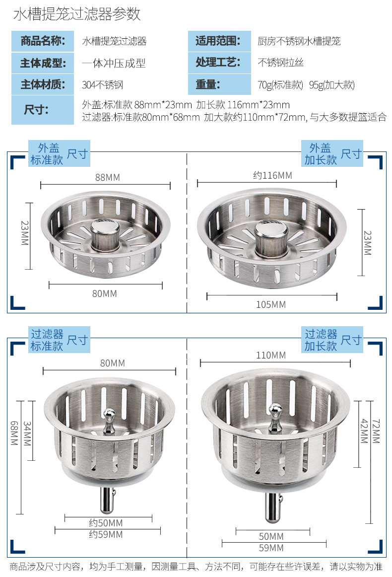 Stainless steel sink sewage carrier basket underwater washing sink filter cage wash basin lid sink filter