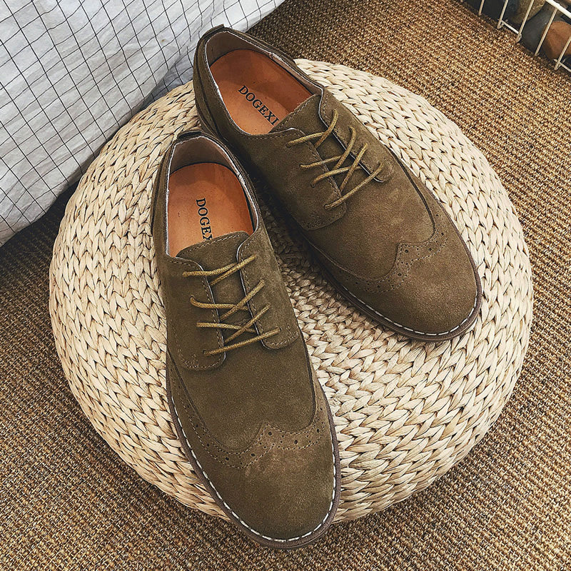 Genuine leather Inn Wind Bloc Shoe Men's shoes Retro men's casual shoes 100 Lapped Sculptures Low Tide Shoes Little Leather Shoes