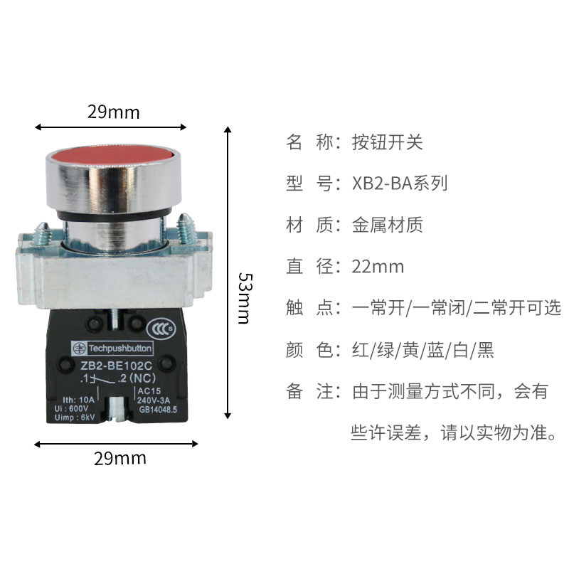Button switch self-reset XB2-BA31 green 42 red 51 yellow 21 black ZB2 often open and closed 22mmLAY5