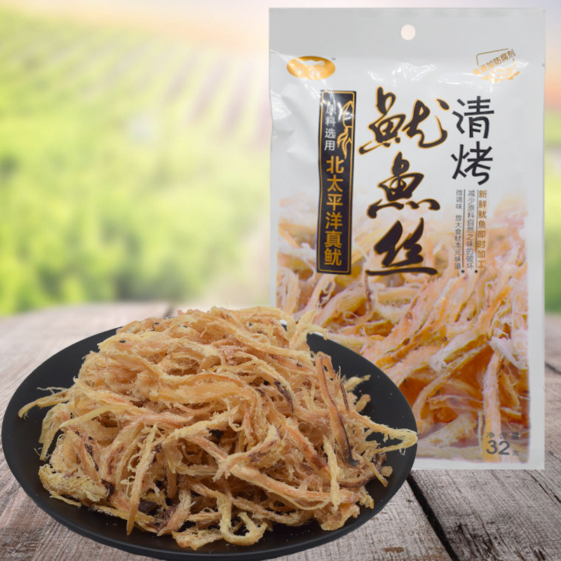 Squid shredded Japanese squid strips Korean hand-torn squid 32g baked squid organ squid plate squid packaging