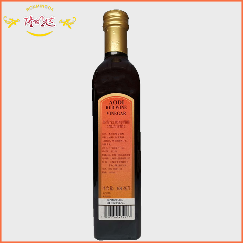 A bottle of Italian imported AODI red wine vinegar 500ml brewed vinegar seasoning vinegar