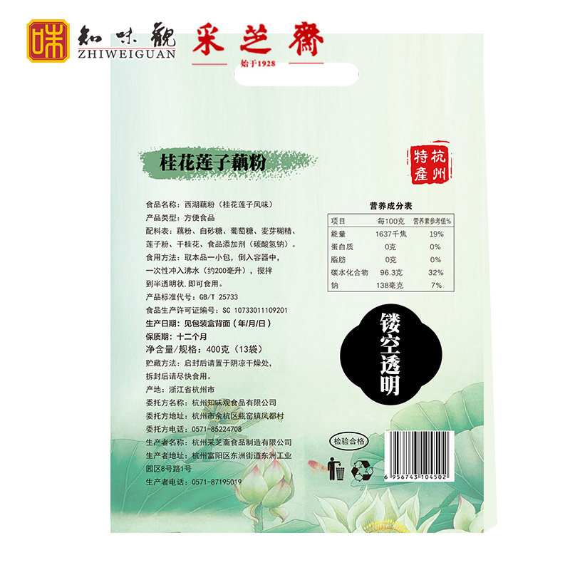 Caizhizhai Osmanthus Lotus seed flavor instant West Lake Lotus root powder 400g small bag Hangzhou specialty brewing drink Convenient breakfast