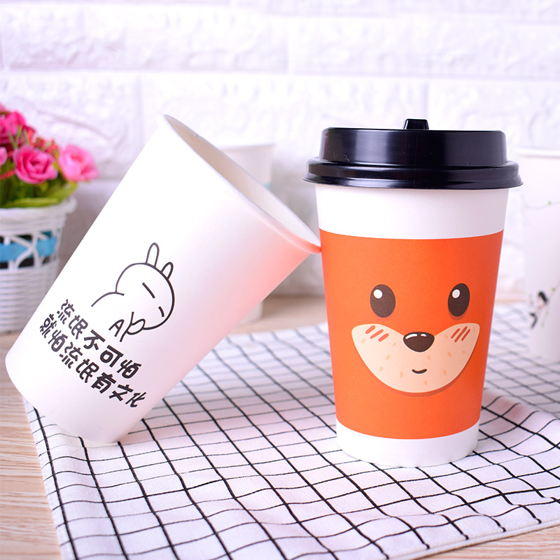 Huiyuan disposable paper cup custom wholesale milk tea cup coffee cup soy milk cup customizable cover 300ml