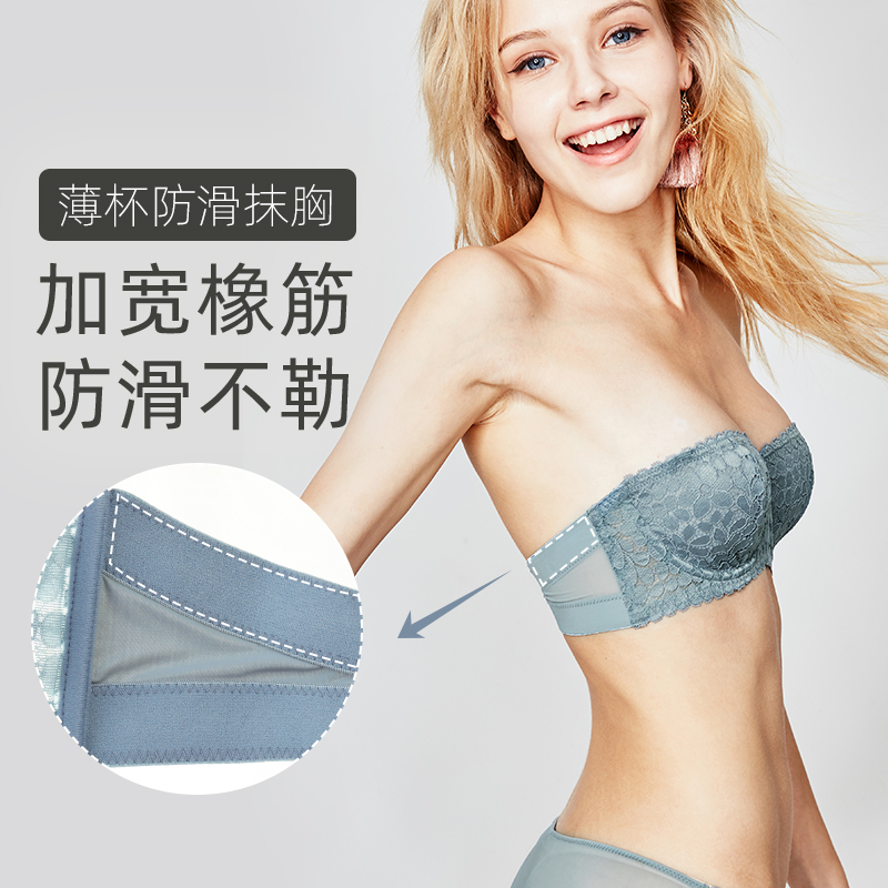 Curious Miss Strapless Underwear Women's Thin Big Chest Small Bra Set Lace Bace French Wrapped Chest Summer