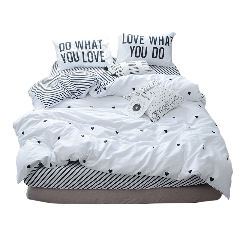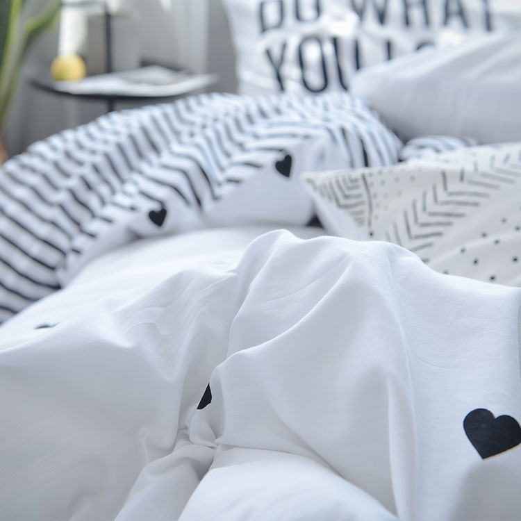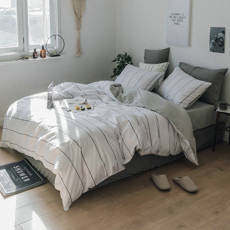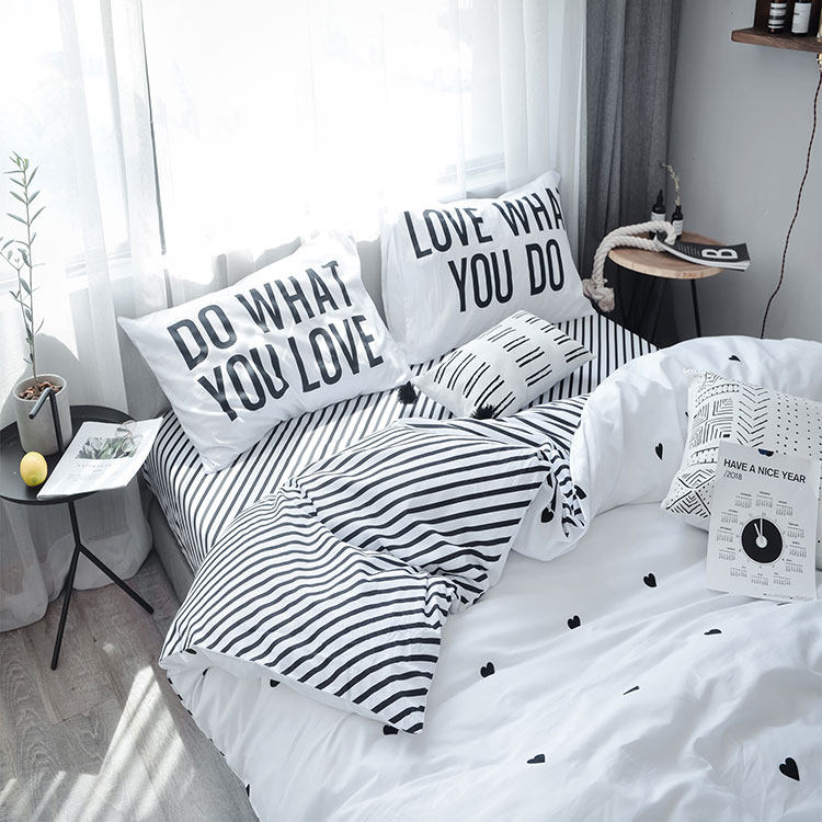 Four pieces of all-cotton pure cotton minimalist Nordic personality white bed bedding Three-piece bed set Bed Hat