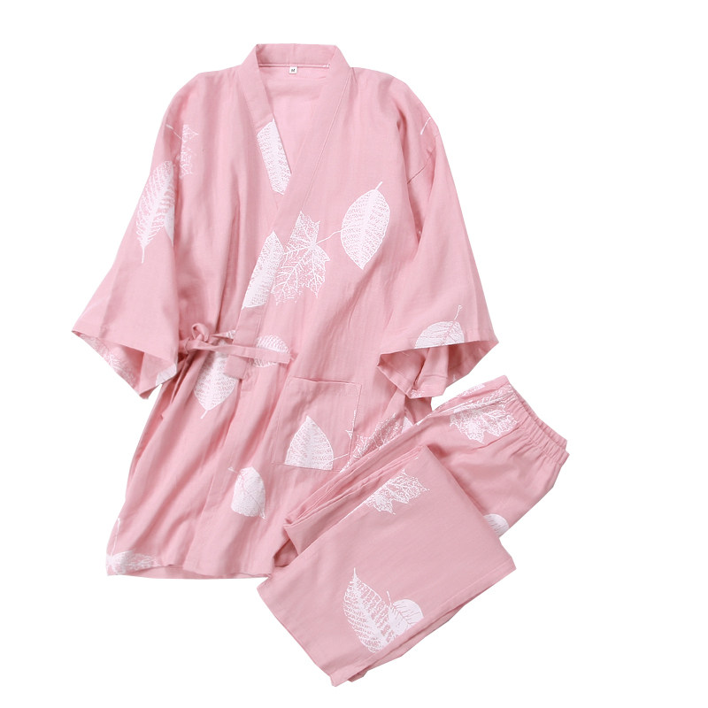 Japanese pajamas women's cotton gauze kimono pajamas short-sleeved trousers Japanese home clothes women's spring and summer thin sweat steam clothes