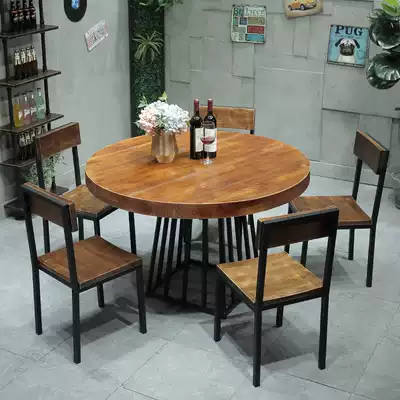 Modern simple round hotel dining table Retro creative wrought iron 6-10 people dining table Nordic solid wood large round table