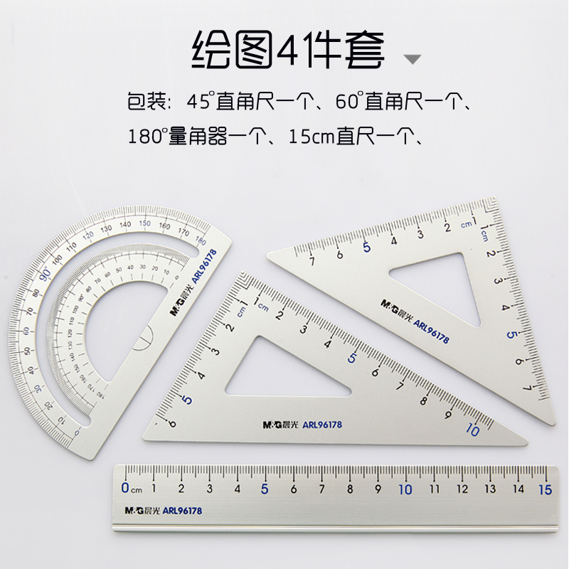 Chenguang ruler set High-precision triangle ruler Ruler protractor Special set ruler for primary school students ' exams Aluminum alloy set ruler Multifunctional metal drawing ruler Drawing answer ruler Confucius Temple blessing