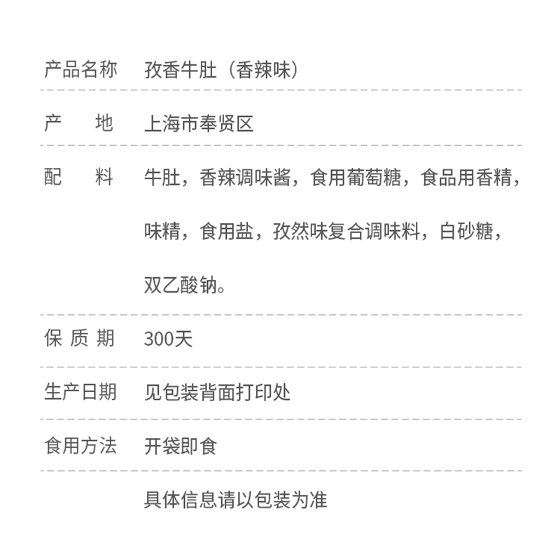 Zixiangu belly 1 packet (about 25g aromas of spicy and spicy tasting) Zizxiang beef tripe 250g (inner about 8 packets) Zizxiang beef belly 500g (about 16 packets in the inner part)