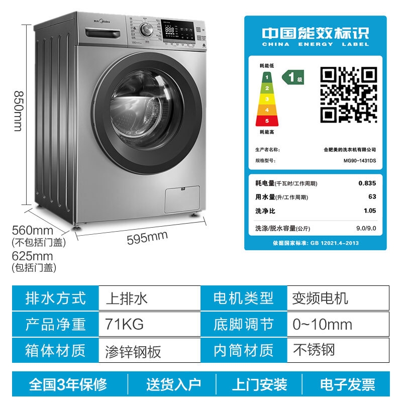 Washing machine automatic home with large capacity roller 9 kg first - stage variable frequency plume wash one - click dehydration