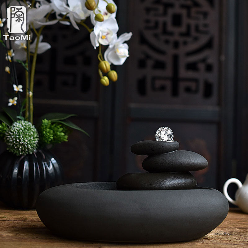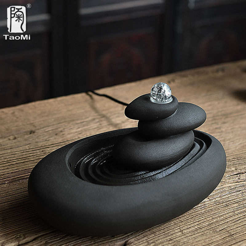 Pottery fan Zen Landscape Water Flow Instrumental Fountain Pendulum-room Dining Room Tricks humidifiers Home Ceramics Decoration Craftsmanship Gifts Swing Accessories