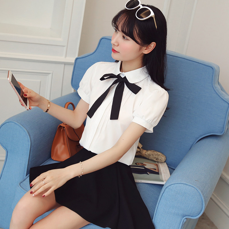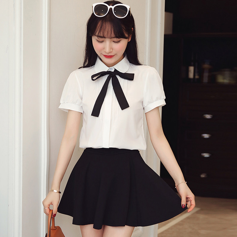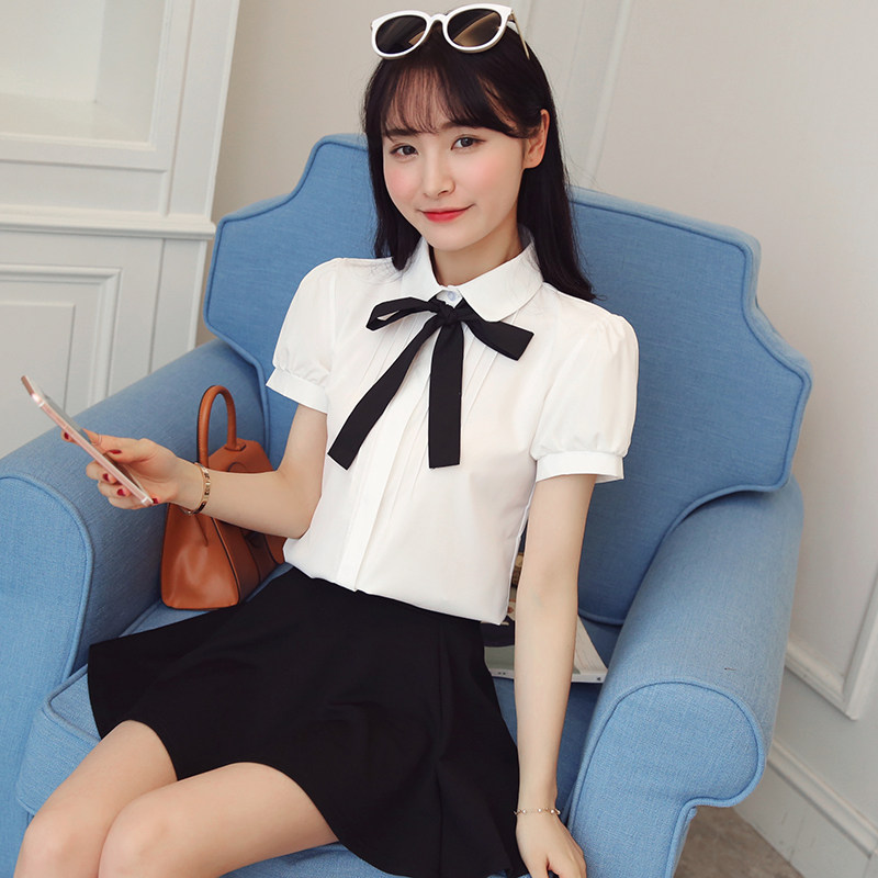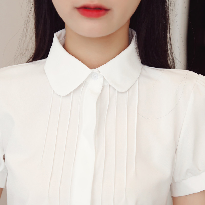 Work sweater white shirt woman 2022 summer clothes doll collar short sleeve teacher interview relaxed student women's shirt for work