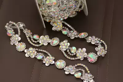 Flower type Color AB tassel diamond chain Belly dance waist chain Neckline decoration Rhinestone DIY clothing accessories Wedding waist chain
