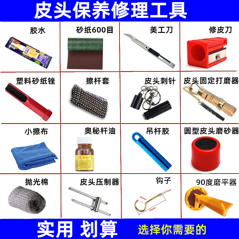 Billiard club leather head repair tool set Rod Oil sand paper boom Rubber file decontamination polishing cotton needle press