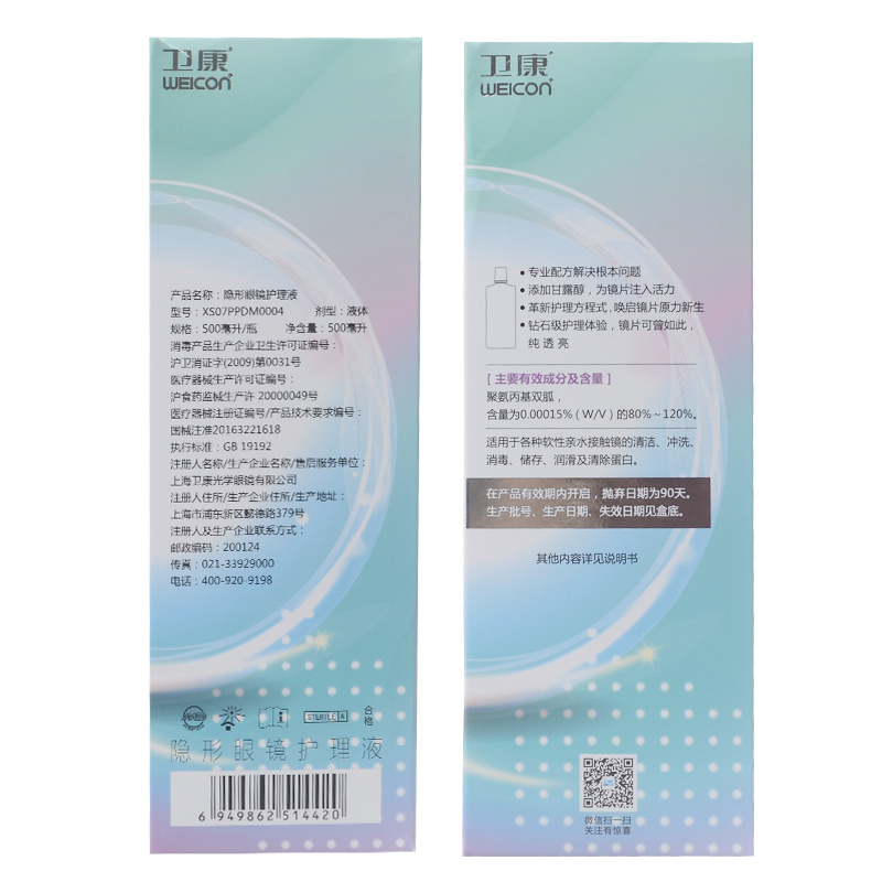 Weikang Xinshi contactless myopia lens care liquid beauty pupil invisible eye cleaning cleaning liquid 500ml large bottle jd