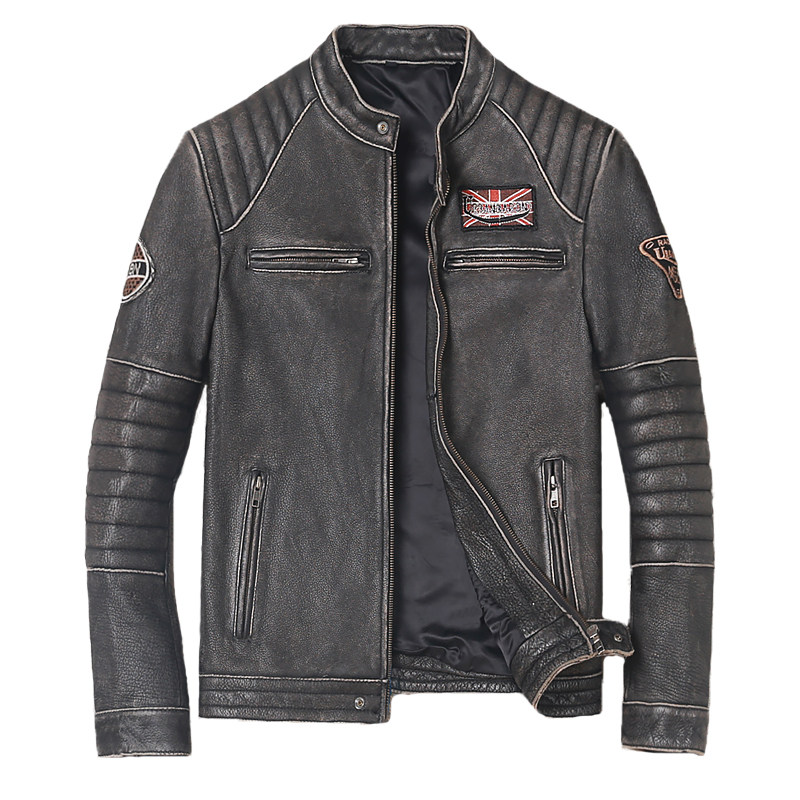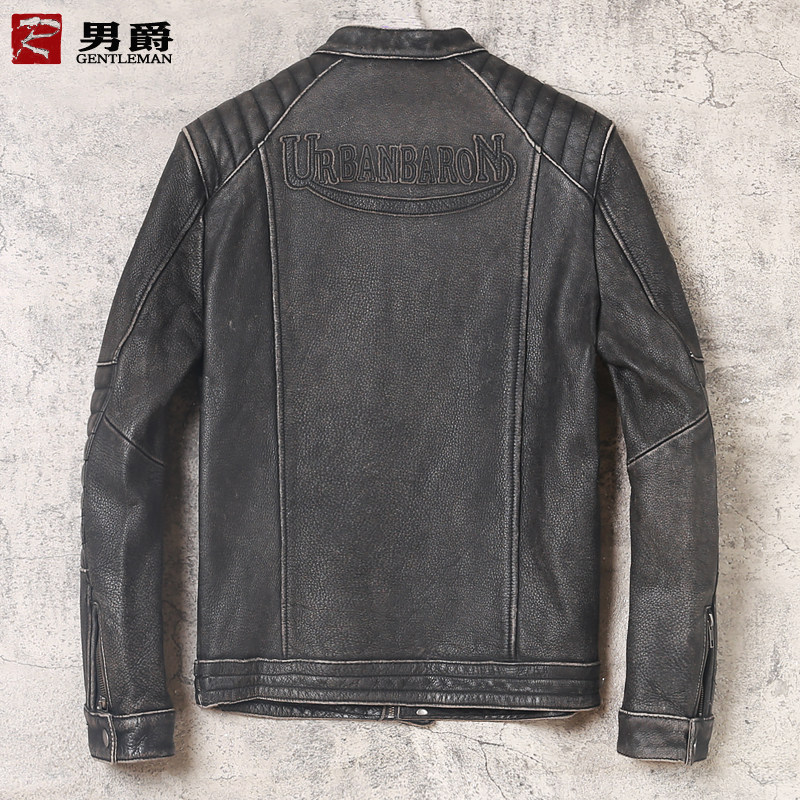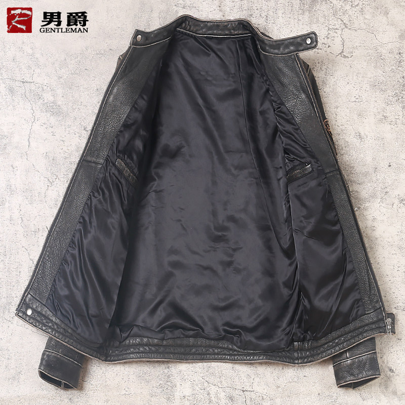 2020 Japanese vintage old leather men's leather stand-up collar motorcycle leather jacket slim short men's jacket