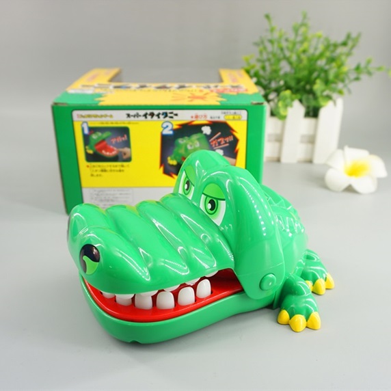 Shivering according to teeth biting a person shark toy biting a finger crocodile adult whole person to blame the whole person for a creative birthday present