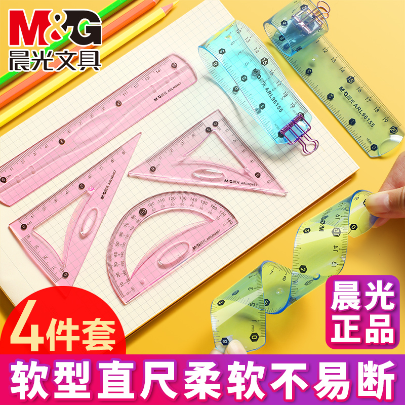 M&G Soft Ruler Student Stationery 20cm Soft Ruler Elementary School Grade 1 Triangle Ruler Protractor 15cm Soft Ruler Set Four Pieces Set Multifunctional Children's Second Grade Ruler Creative Ruler