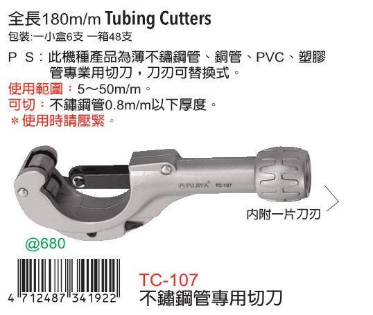Taiwan imported original TC-107 Fuya tool FUJIYA stainless steel tube special cutter