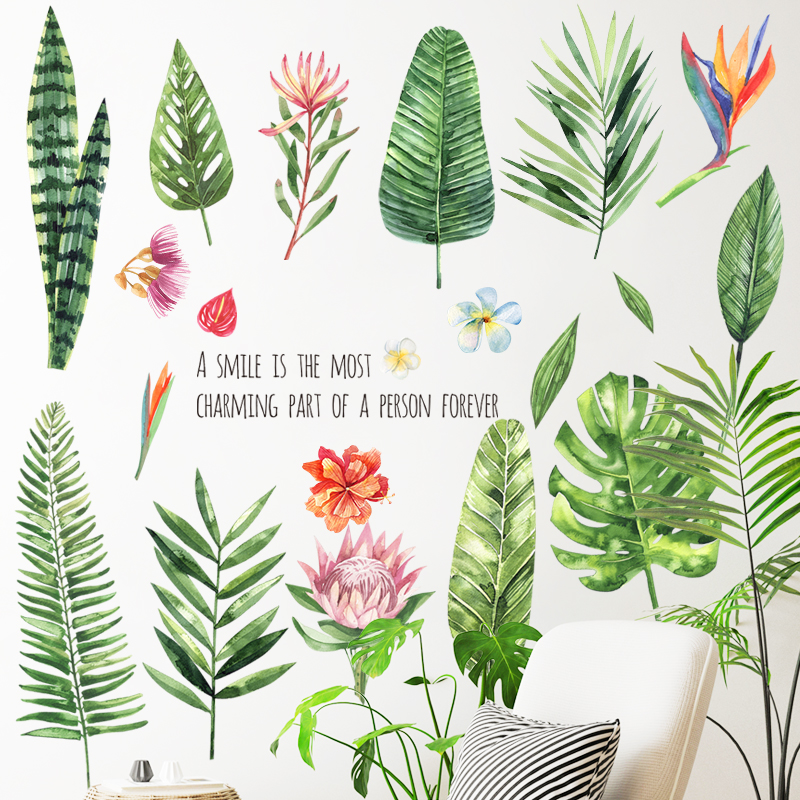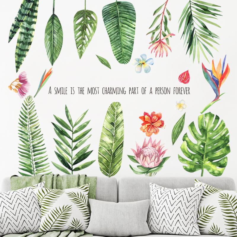 Wall stickers green leaves Nordic living room bedroom dormitory self-adhesive waterproof stickers door plants flowers wall decoration stickers