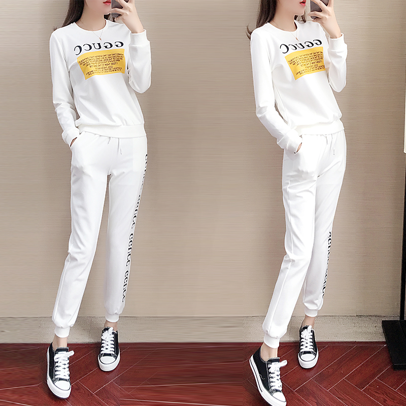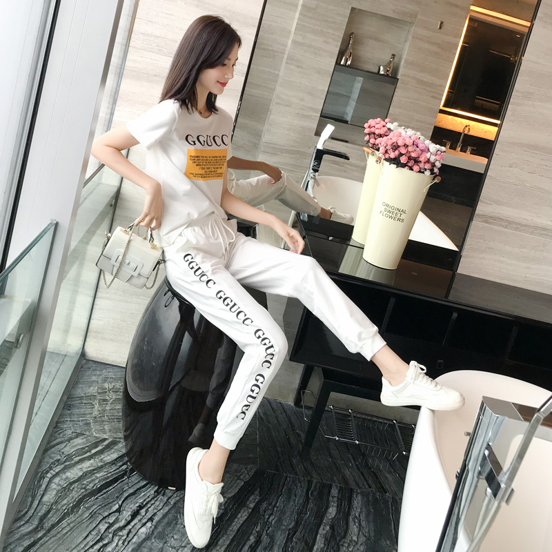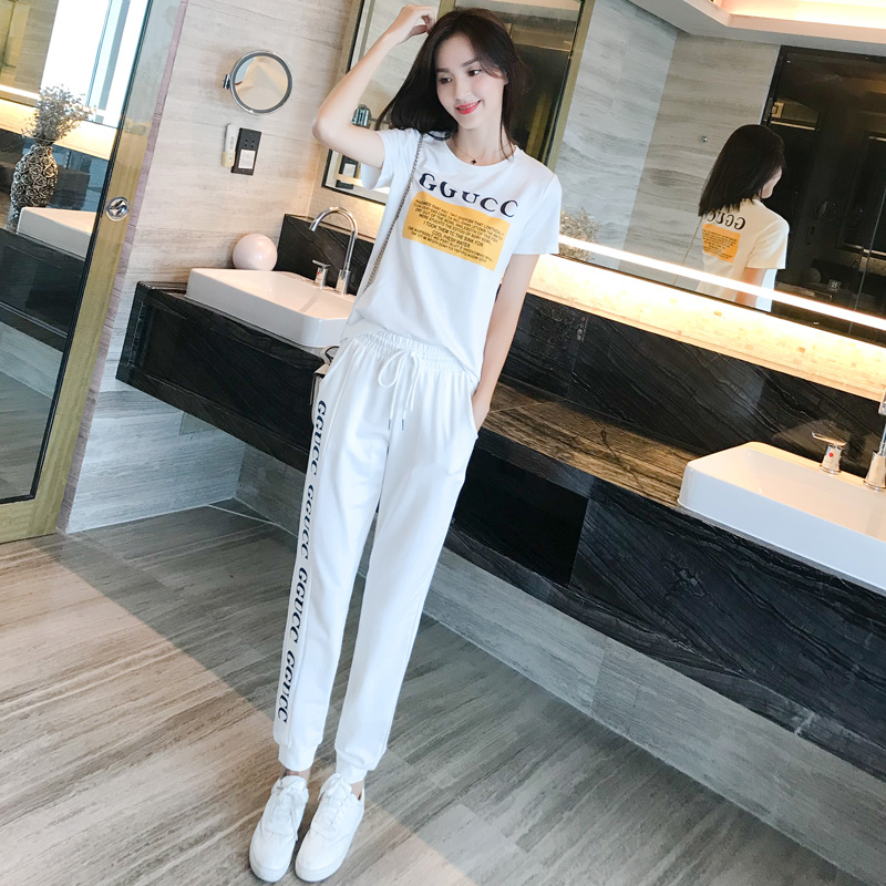 Sports Leisure Suit Women's Summer 2021 New Korean Fashion Foreign Skinny Short Sleeve Pants Age Reduction Two-Piece Tide