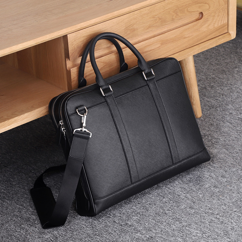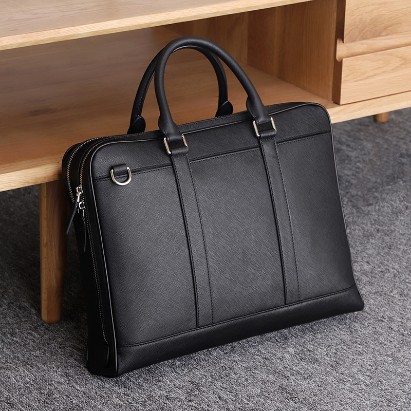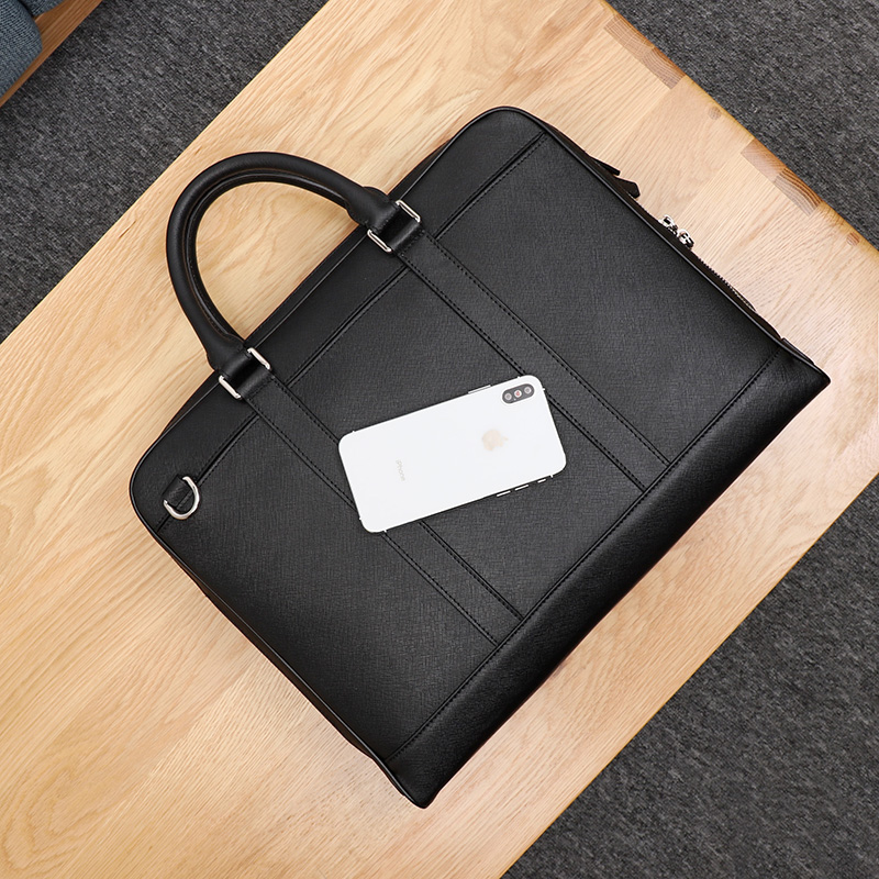 Briefcase Men's Business Handbag Wear-resistant Cowhide Double Compartment Large Capacity One Shoulder Messenger Bag Computer Bag Horizontal Section