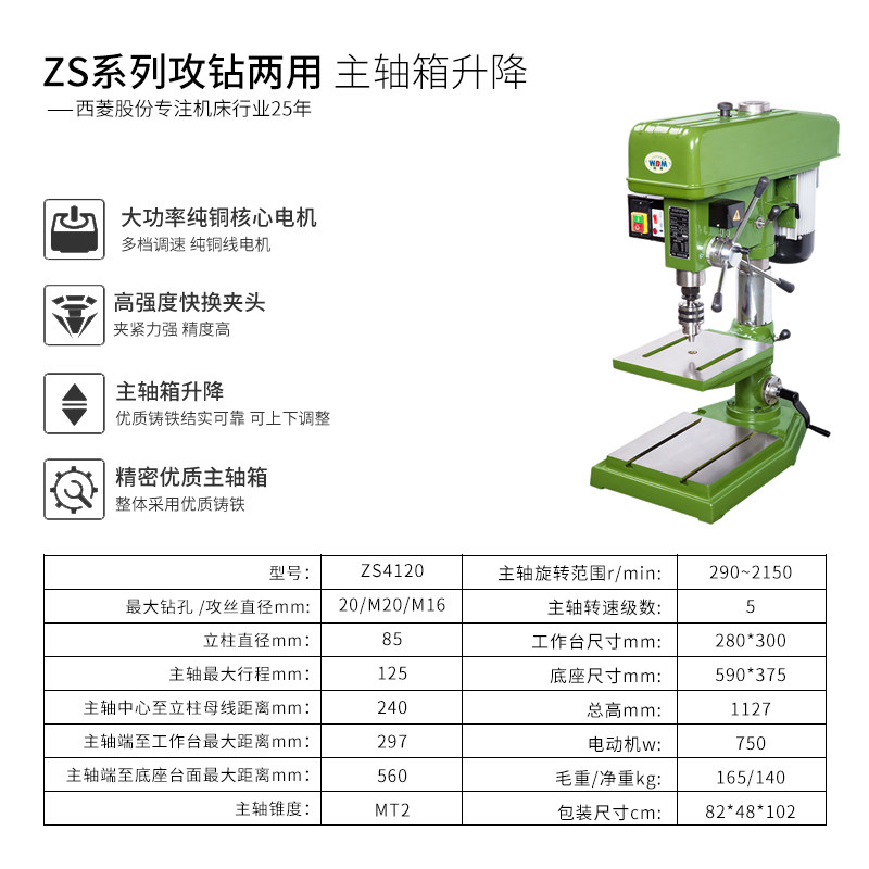 Western Rhombus Drilling for dual use All bed Industrial drilling rig drill 380V drilling machine tapping machine tapping machine ZS4125