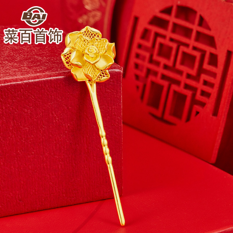 Caibai gold wedding gold hairpin mandarin duck hairpin foot gold head hairpin a hundred years of wedding jewelry