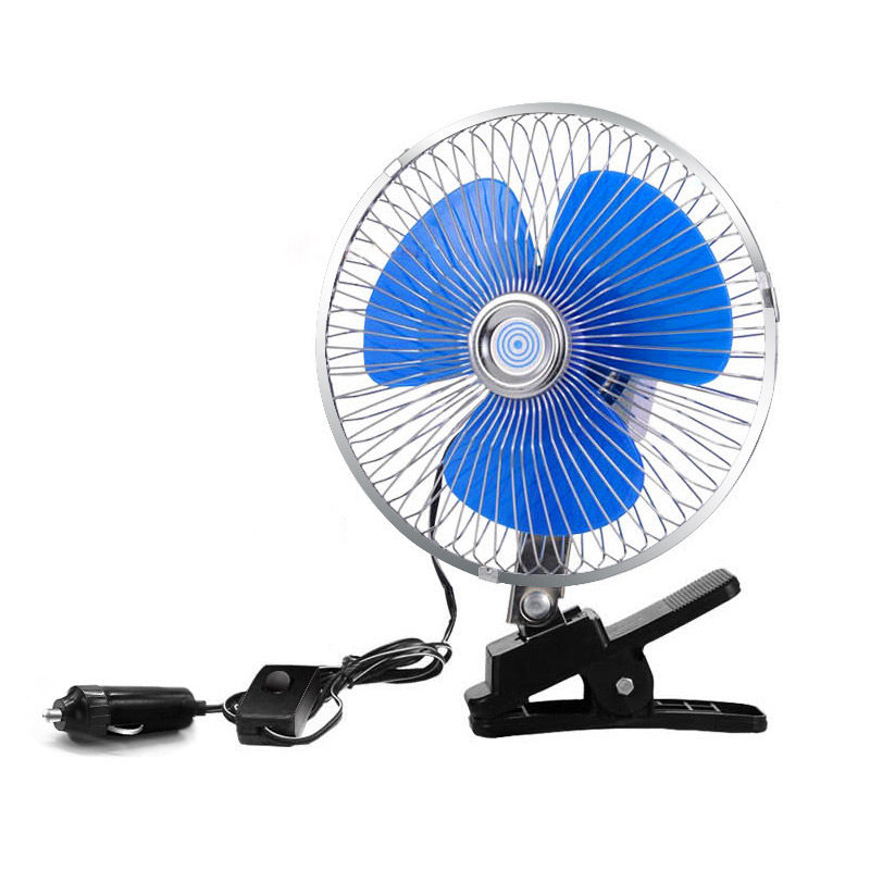 Stepless variable speed clip 11 inch 6 blades powerful car electric fan 24V 12v large truck refrigeration shaking head dual motor