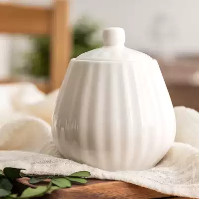 Ceramic pure white relief with lid sugar Cudge European bone china coffee sugar tank sugar box tea jar storage tank