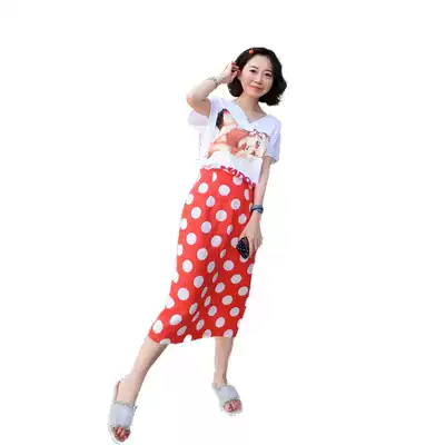 BORAKOO Korea Dongdaemun Summer Orange red large round dot polka dot cotton and linen skirt short skirt