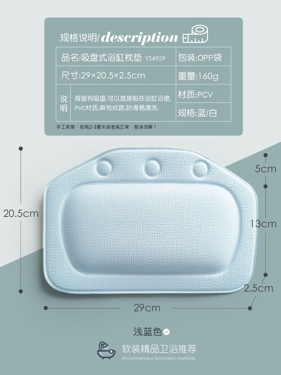 Rough Clostride Light Blue Bath Pillow Coarse Bub White Bathtub Pillow Full Shop Full RMB28
