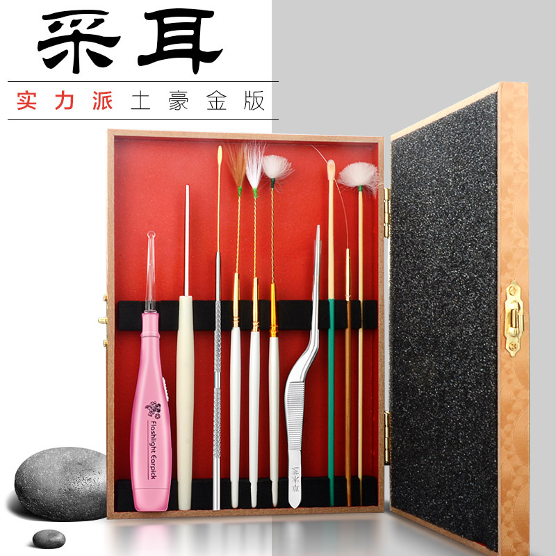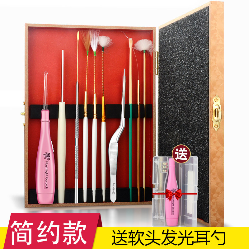 Professional ear-picking tool set Ear-digging artifact Ear-digging spoon Ear-digging goose feather stick Luminous ear-picking spoon ear-beating hair