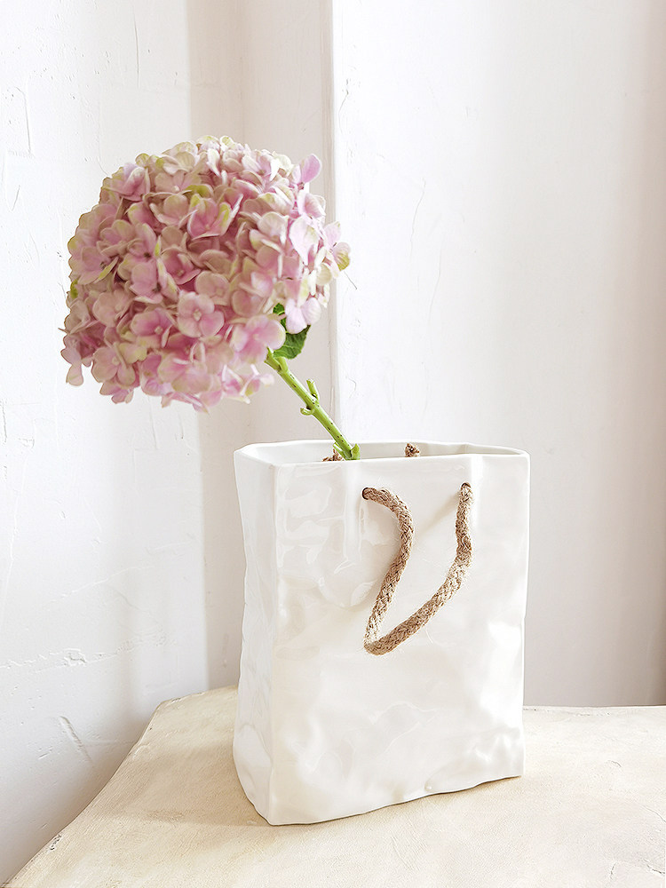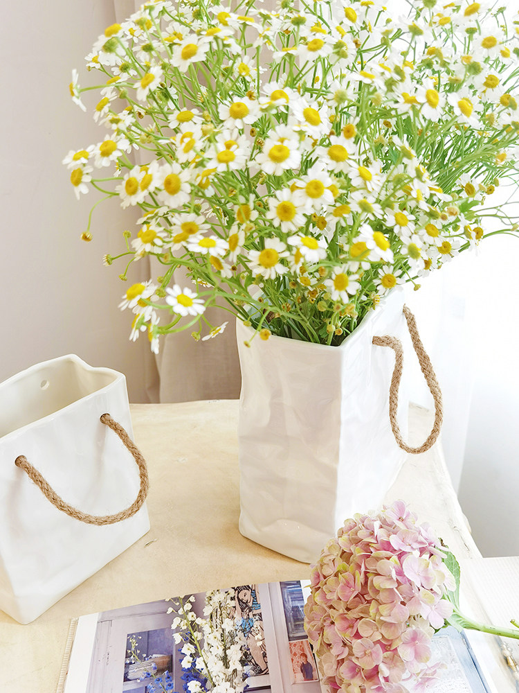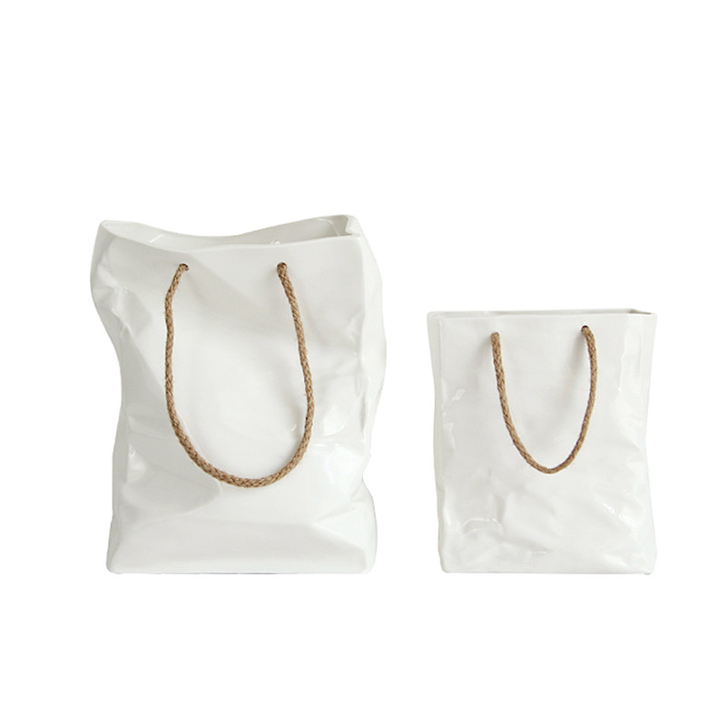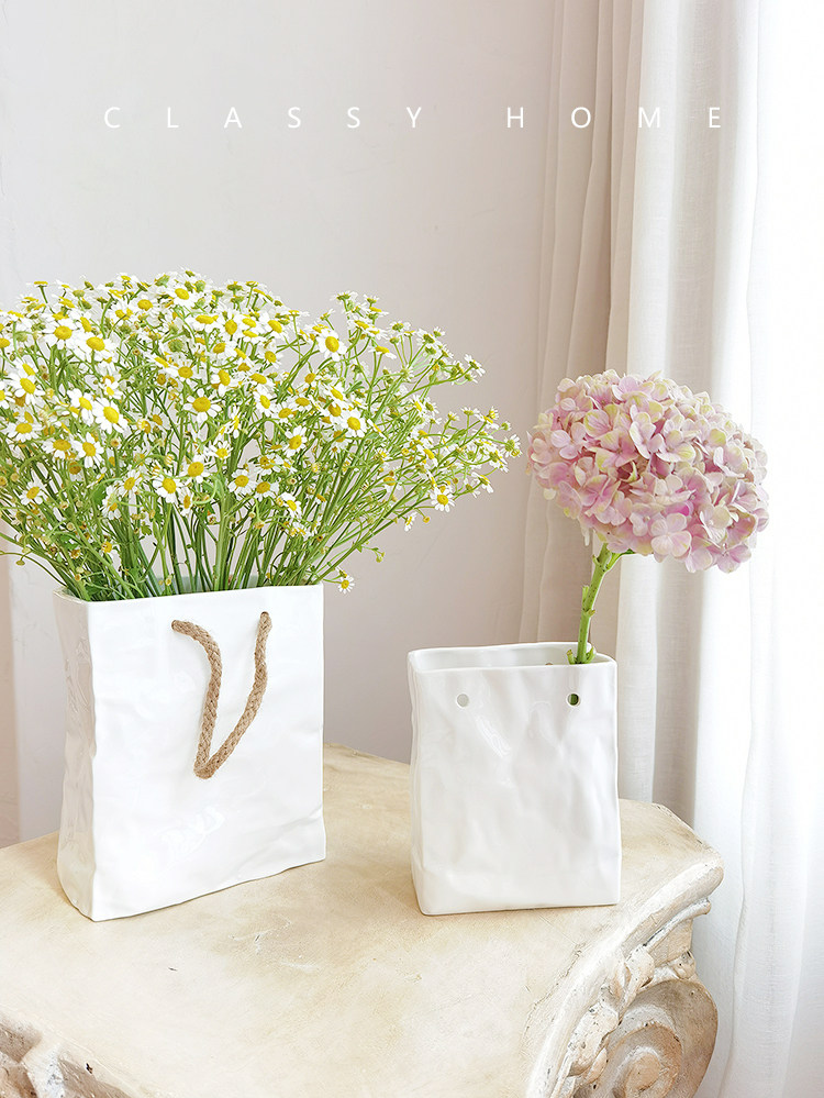 Nordic modern geometric paper bag shape ceramic vase flower ornaments American French rural pastoral European simplicity