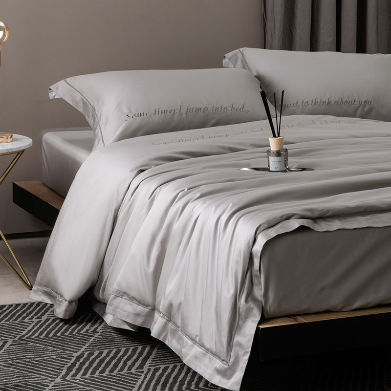 Literary small fresh 60s long-staple cotton four-piece set romantic embroidery English simple pure color pure cotton bedding