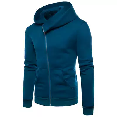 Type Joker foreign trade diagonal zipper trendy man hooded long sleeve thick cotton T men's youth British coat fashion clothes