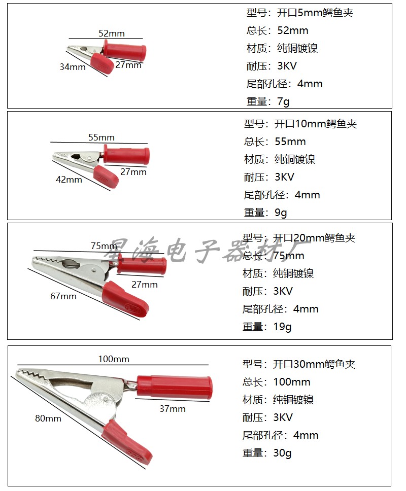 Opening 5 10mm 20mm 30mm alligator clip pure copper small large special alligator clip power test clip