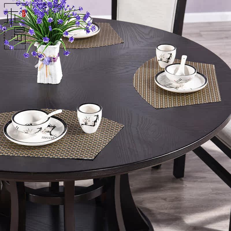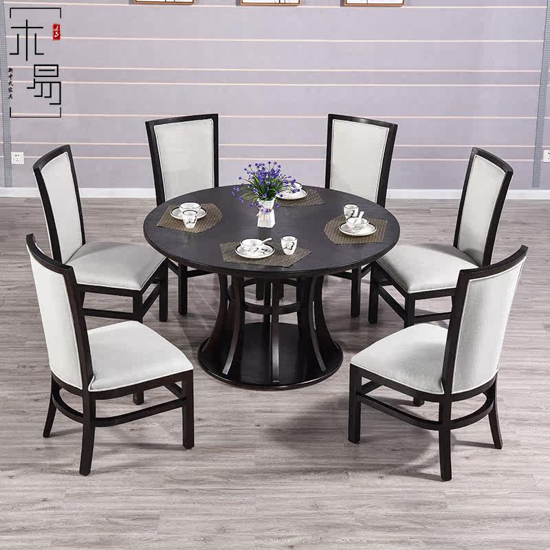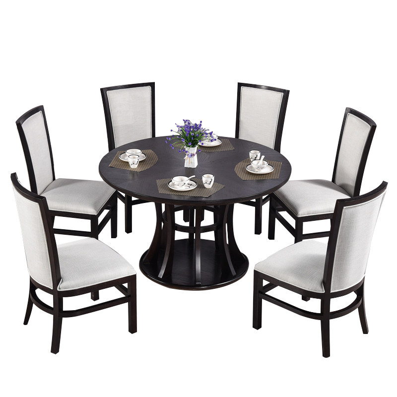 New Chinese solid wood round dining table and chairs combined modern minimalist hotel dining room Home One table six chairs Dining Table Furniture