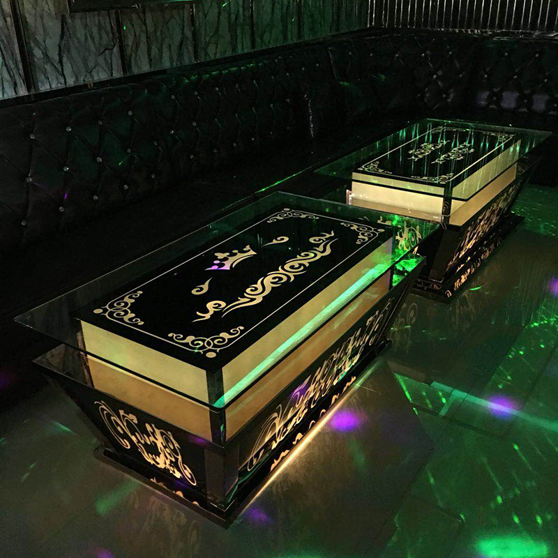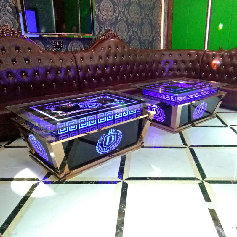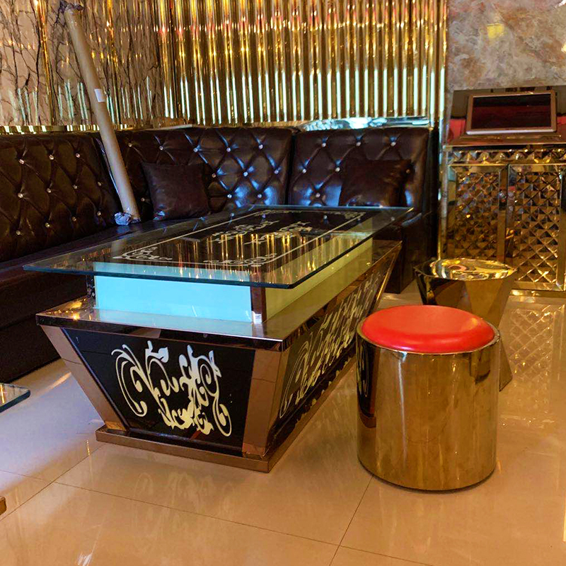 Manufacturer customized bar ktv luminous golden tea table tempered glass light lavish Nordic stainless steel rectangular table