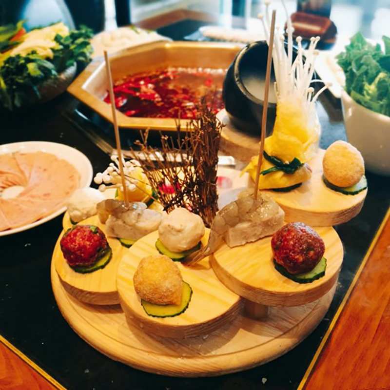 Hot pot restaurant creative tableware step by step high solid wood tableware rotating sushi plate fruit snack rack artistic conception tableware