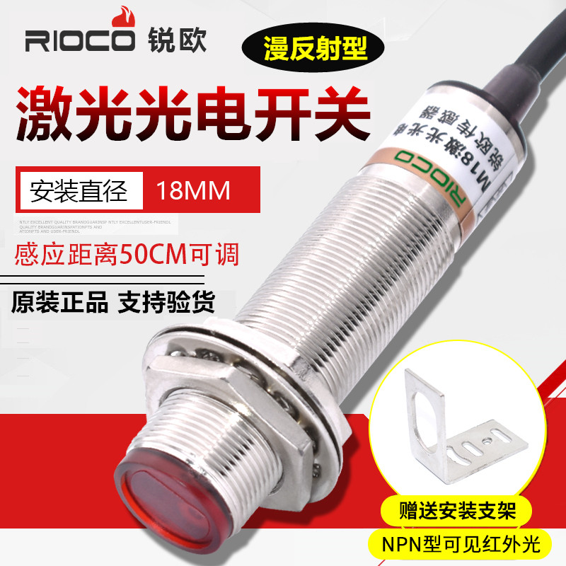 M18 laser sensor visible infrared light photoelectric diffuse reflection infrared sensor switch NPN three-wire normally open